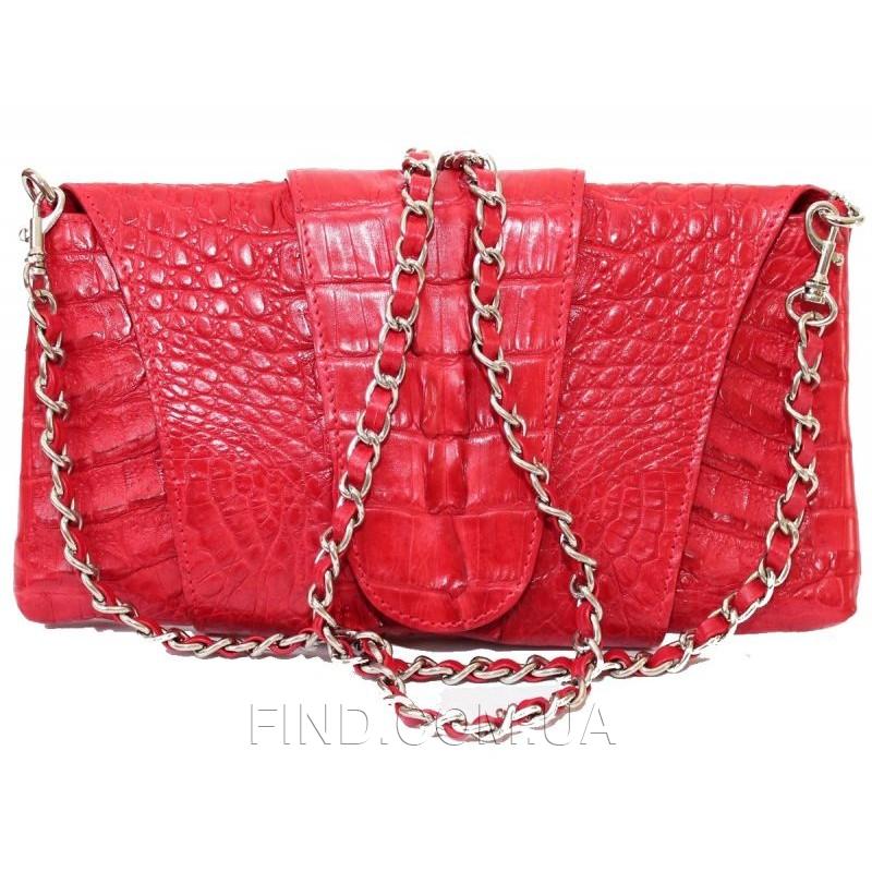 Женская сумка-клатч из кожи крокодила (FCM 320 Fire red)