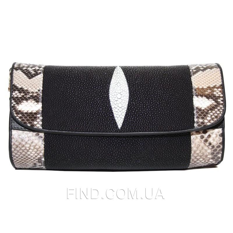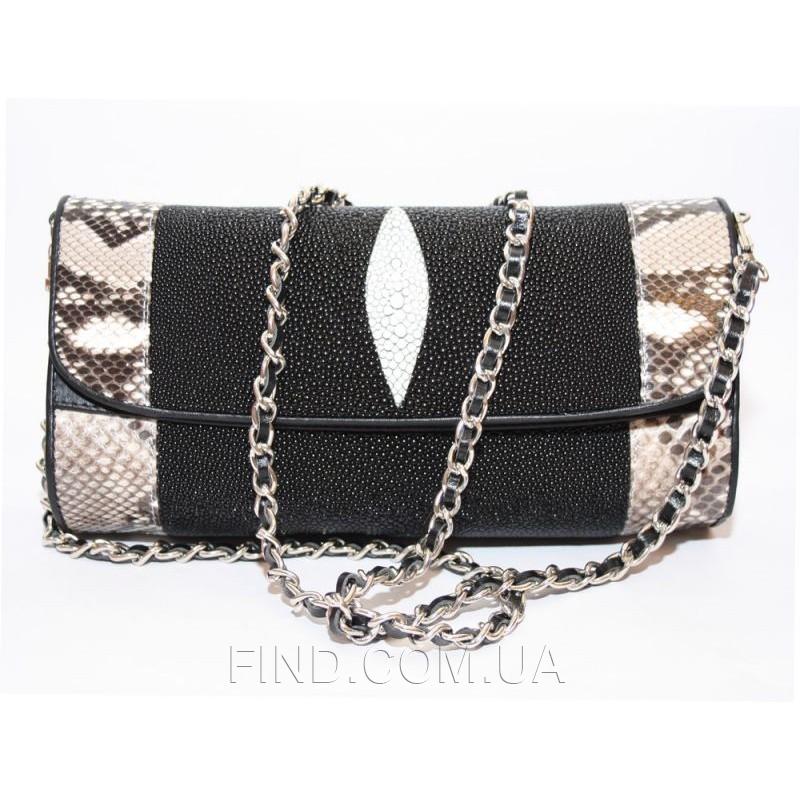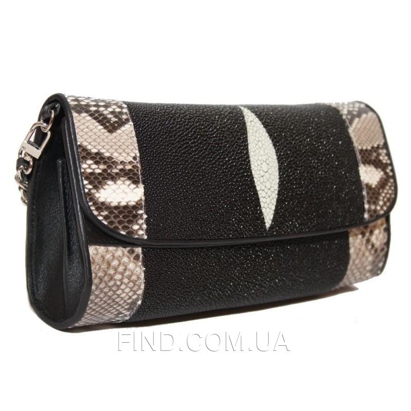 Женская сумка из натуральной кожи ската и питона (ST 301 PT Black/Natural)