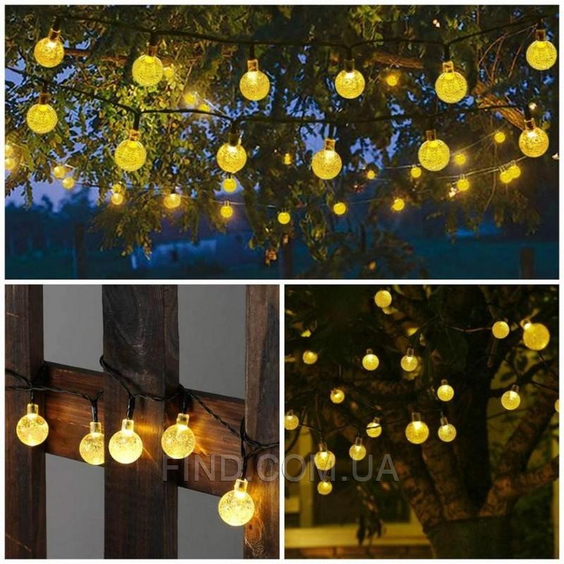 Светодиодная гирлянда уличная Crystal Ball 100 LED на солнечной батарее (10 метров) WARM