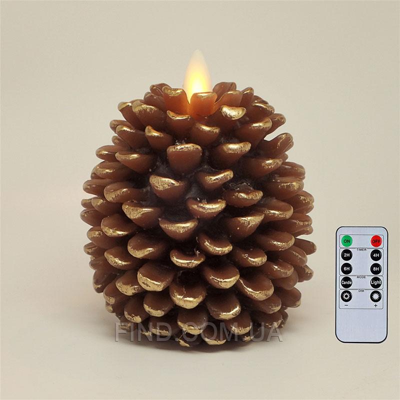 Светодиодная свеча с имитацией пламени в форме елочной шишки с пультом управления. Специальная конструкция фитиля создает эффект, подобный мерцанию настоящей свечи, видимый с любой точки.