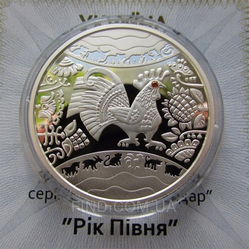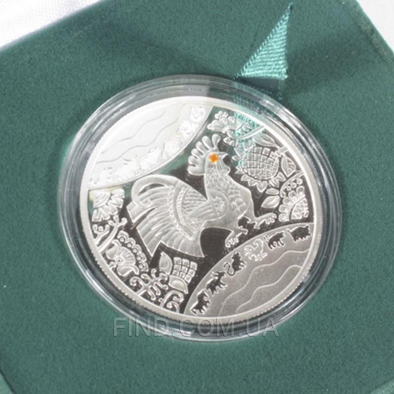 Подарочная серебряная монета "Год Петуха". Выпущена Национальным банком Украины в рамках серии "Восточный календарь".