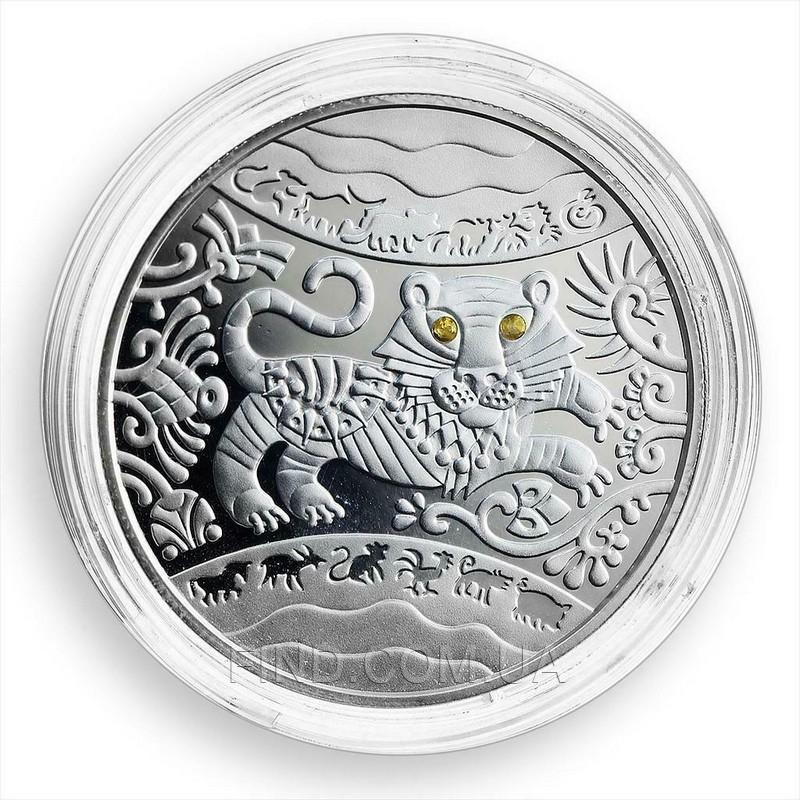 Подарочная серебряная монета "Год Тигра". Выпущена Национальным банком Украины в рамках серии "Восточный календарь".