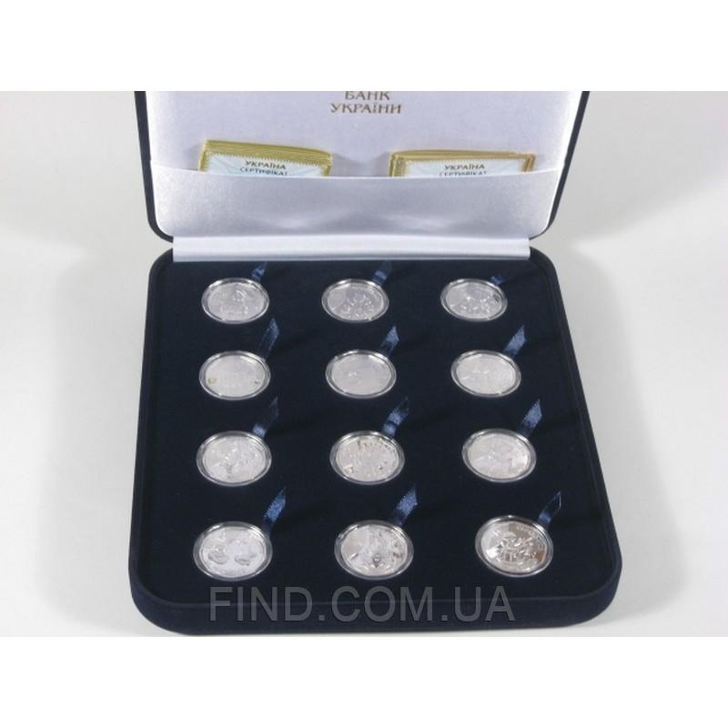 Набор из 12-ти серебряных монет 'Детские знаки зодиака'.