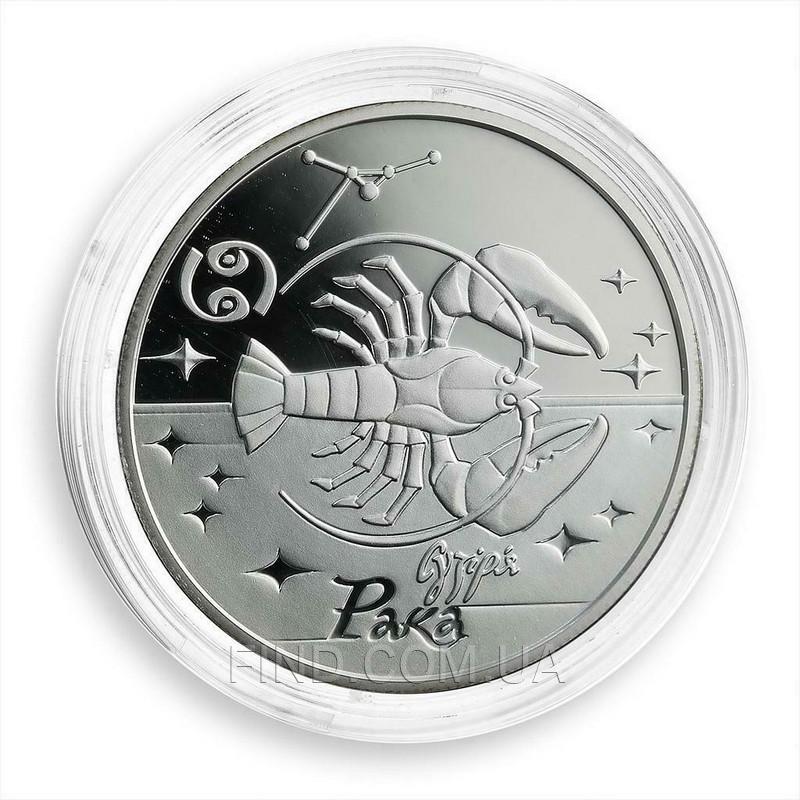 Серебряная монета 'Рак' - это памятная подарочная серебряная монета знака зодиака, выпущенная Национальным Банком Украины в рамках серии монет 'Знаки Зодиака'. Монета посвящена созвездию 'Рак'. К каждой серебряной монете прилагается сертификат НБУ, с описанием всех характеристик монеты.