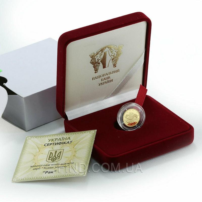 Золотая монета 'Рак' - это памятная подарочная золотая монета знака зодиака, выпущенная Национальным Банком Украины в рамках серии монет 'Знаки Зодиака'. Монета посвящена созвездию 'Рак'. К каждой золотой монете прилагается сертификат НБУ, с описанием всех характеристик монеты.